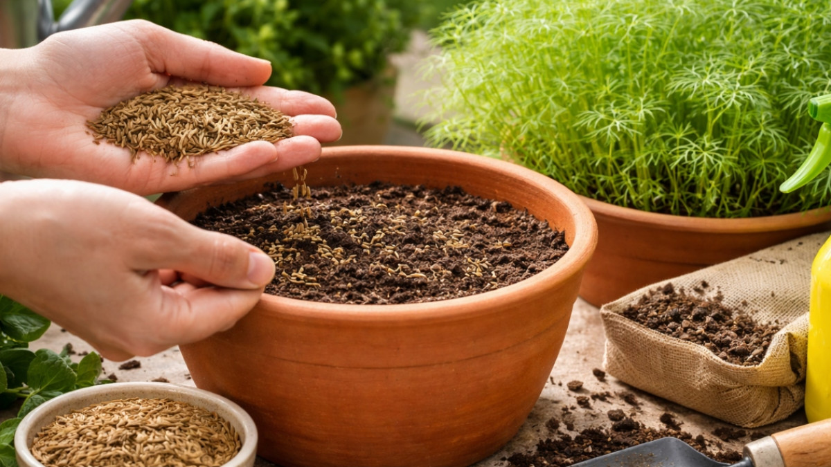सबसे पहले जीरे के बीजों को 8-10 घंटे पानी में भिगो दें। इससे अंकुरण जल्दी होता है। अब गमले की मिट्टी में 1-1.5 सेंटीमीटर गहराई पर बीज डालें और हल्की मिट्टी से ढक दें। पानी का छिड़काव करें, लेकिन ज्यादा पानी न डालें।