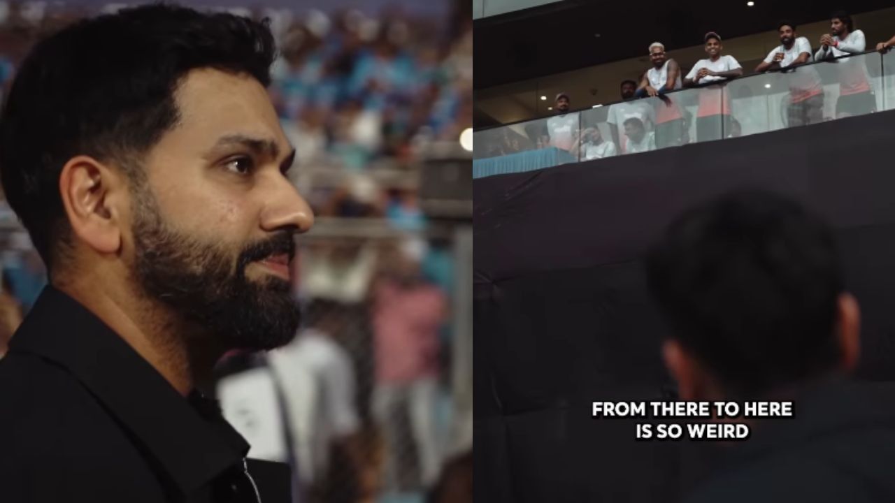 रोहित शर्मा जब वानखेड़े के मैदान पर पहुंचे तो कप्तान सूर्यकुमार यादव, हार्दिक पांड्या, मोहम्मद सिराज और तिलक वर्मा समेत टीम इंडिया के खिलाड़ी ड्रेसिंग रूप में खड़े थे. तब रोहित ने खिलाड़ियों की ओर देखते हुए कहा, 'अजीब लग रहा है इधर...वहां से यहां इधर....अजीब लग रहा है". वहीं टॉस के दौरान सूर्यकुमार यादव भागते हुए रोहित शर्मा के पास आते हैं और पूछते हैं कि बैटिंग लेनी चाहिए, जिसपर रोहित बोलते हैं "फील्डिंग कर, पागल है किया". रोहित का यह वीडियो आईसीसी ने शेयर किया है, जो काफी वायरल हो रहा है और फैंस अपने पुराने कप्तान को याद कर रहे हैं.