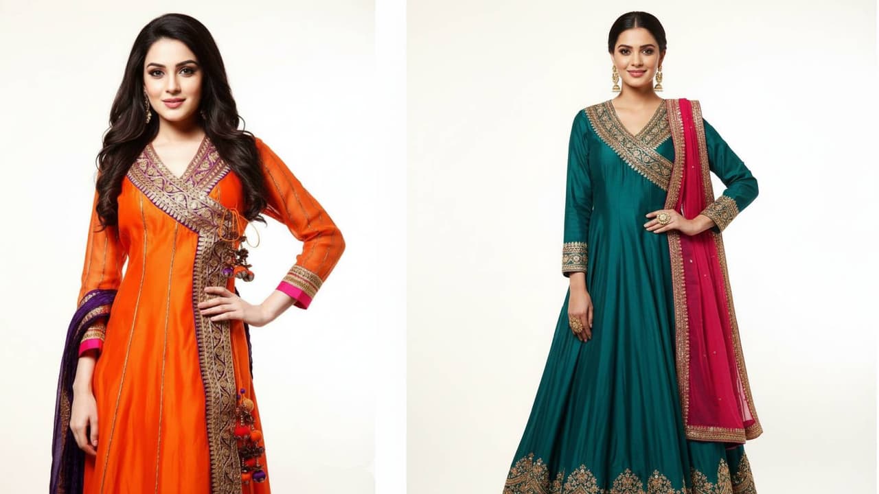 Angrakha Suit From Saree: मां की चौड़े बॉर्डर की साड़ी से बनवाएं अंगरखा सूट, पूरा 6 M कपड़ा होगा यूज