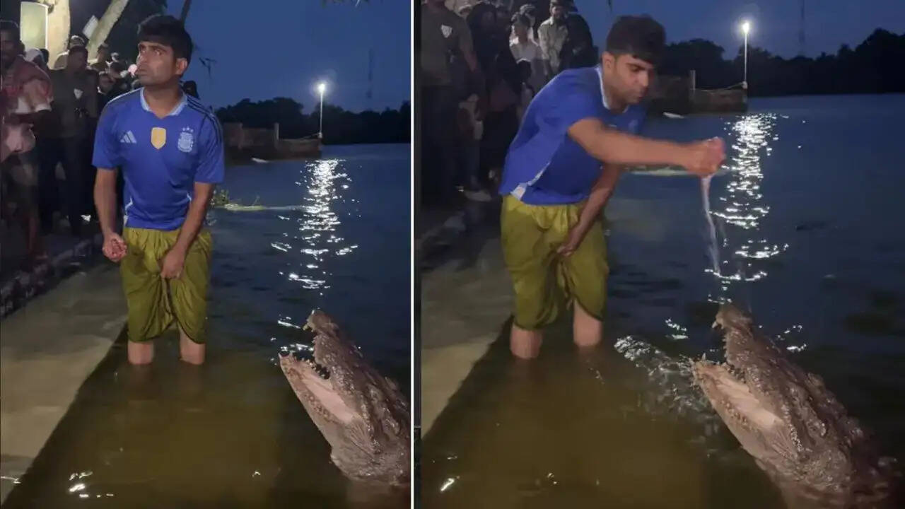 क्या आपने देखा है इतना खतरनाक दोस्ताना! मगरमच्छ को हाथ से खाना खिलाते दिखा शख्स, देखे वीडियो