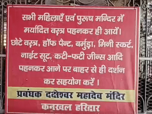 हरिद्वार-ऋषिकेश के मंदिरों में फटी जींस-स्कर्ट में नहीं मिलेगी एंट्री:प्रवेश द्वार पर 'ड्रेस कोड' के पोस्टर लगे, प्रबंधक बोले- मनोरंजन वाले बाहर से दर्शन करें