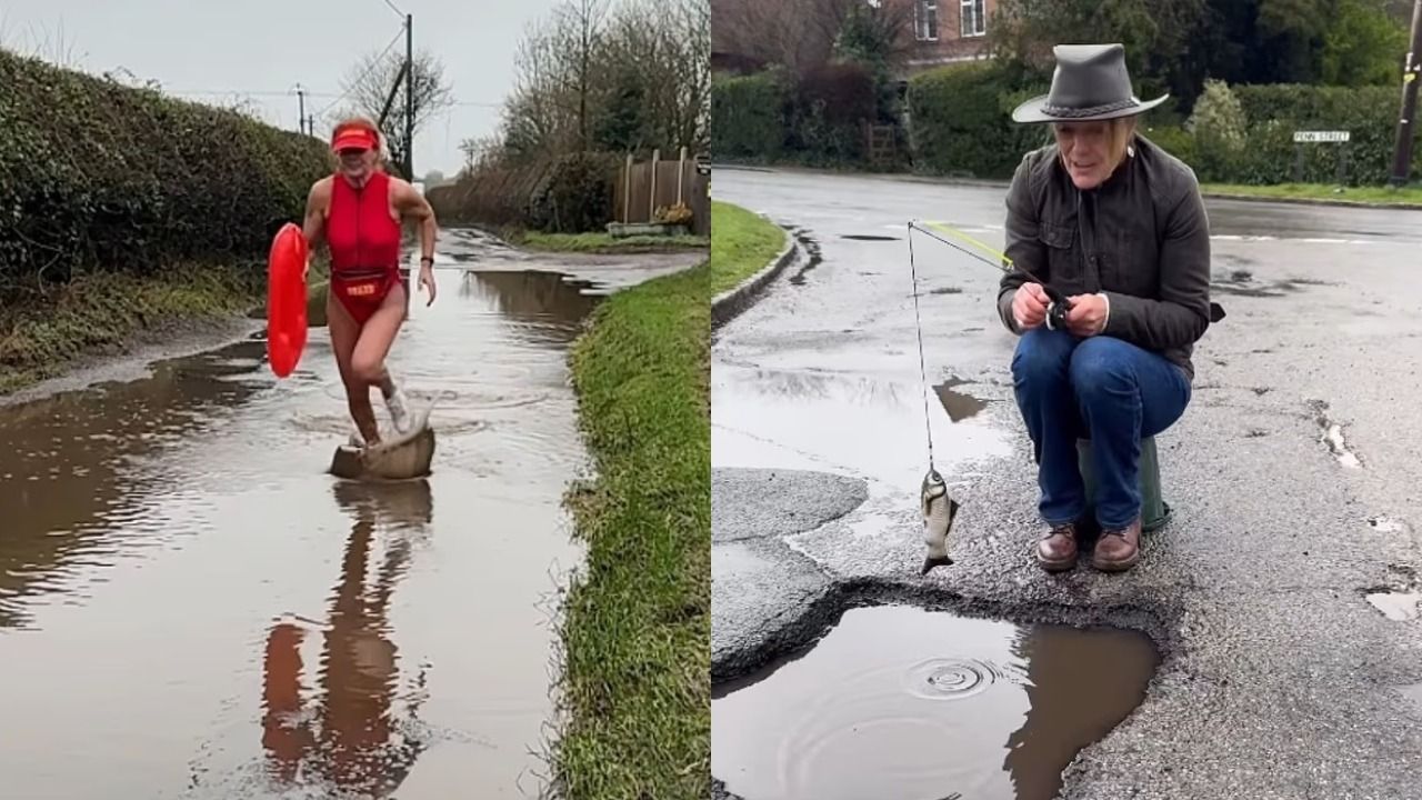 पानी में खेलने से मछली पकड़ने तक, खराब सड़कों से तंग ब्रिटेन की महिला ने यूं सिखाया सबक, वीडियो बनाकर उड़ाया मजाक