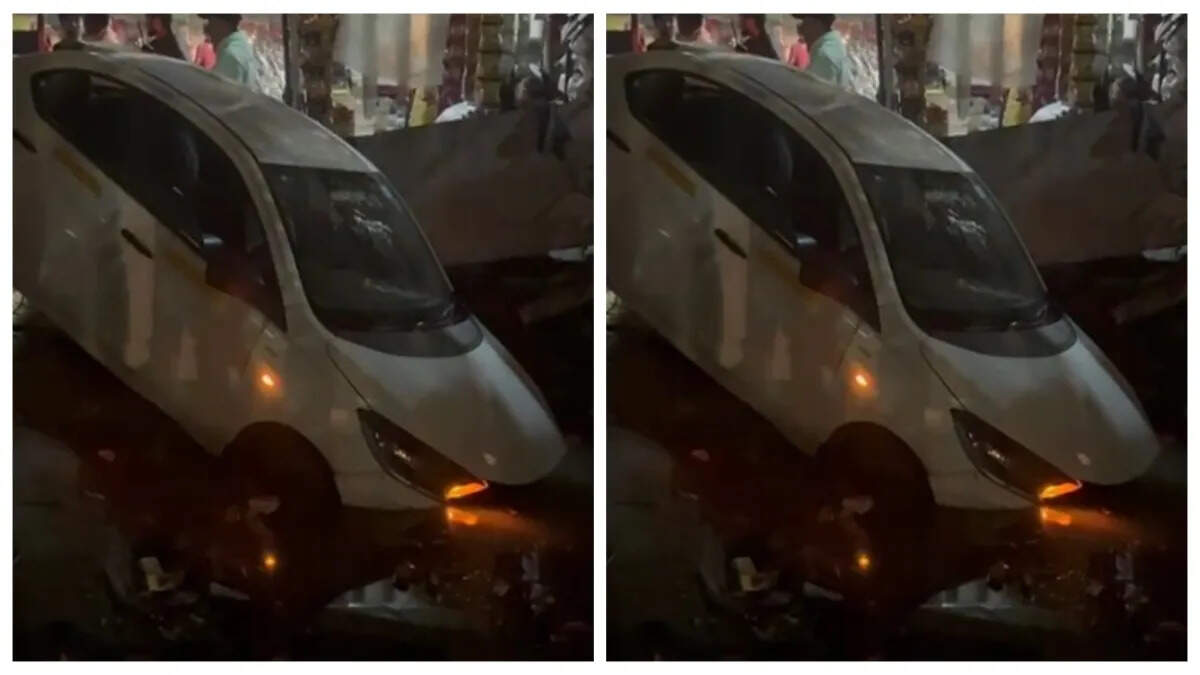 कार फिसलकर नाले में गिरी, ड्राइवर की हुई बाल-बाल जान बची