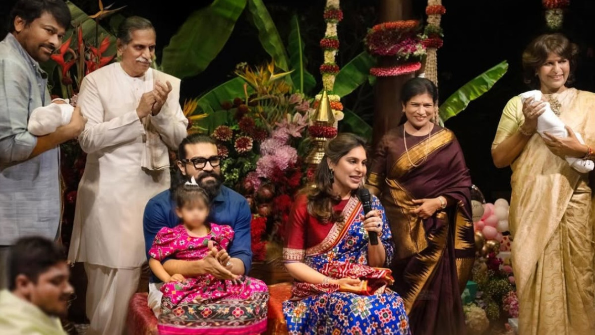 वहीं बेटी अनवीरा में ‘वीरा’ का अर्थ है बहादुरी, जबकि ‘अन’ उसे असीमित बनाता है। ‘देवी’ शब्द दिव्य स्त्री शक्ति और सौम्यता का प्रतीक है। राम चरण ने कहा कि ये नाम सिर्फ पहचान नहीं, बल्कि बच्चों के लिए शक्ति, प्रेम और साहस की प्रेरणा हैं। अभिनेता चिरंजीवी ने इस समारोह से परिवार की तस्वीरें शेयर कर दोनों नवजात बच्चों की झलक दिखाई है।