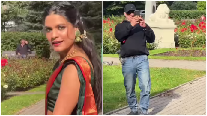विदेश में भारतीय संस्कृति की झलक! साड़ी पहनकर निकली महिला, कैमरे में कैद हुए विदेशियों के अनोखे रिएक्शन