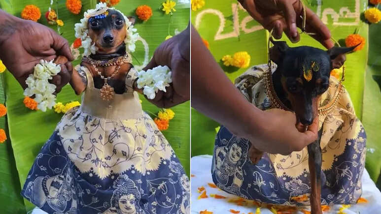 प्रेग्नेंट डॉगी का पारंपरिक बेबी शॉवर, हल्दी-पूजा और नज़र उतारने की रस्मों वाला वीडियो सोशल मीडिया पर वायरल