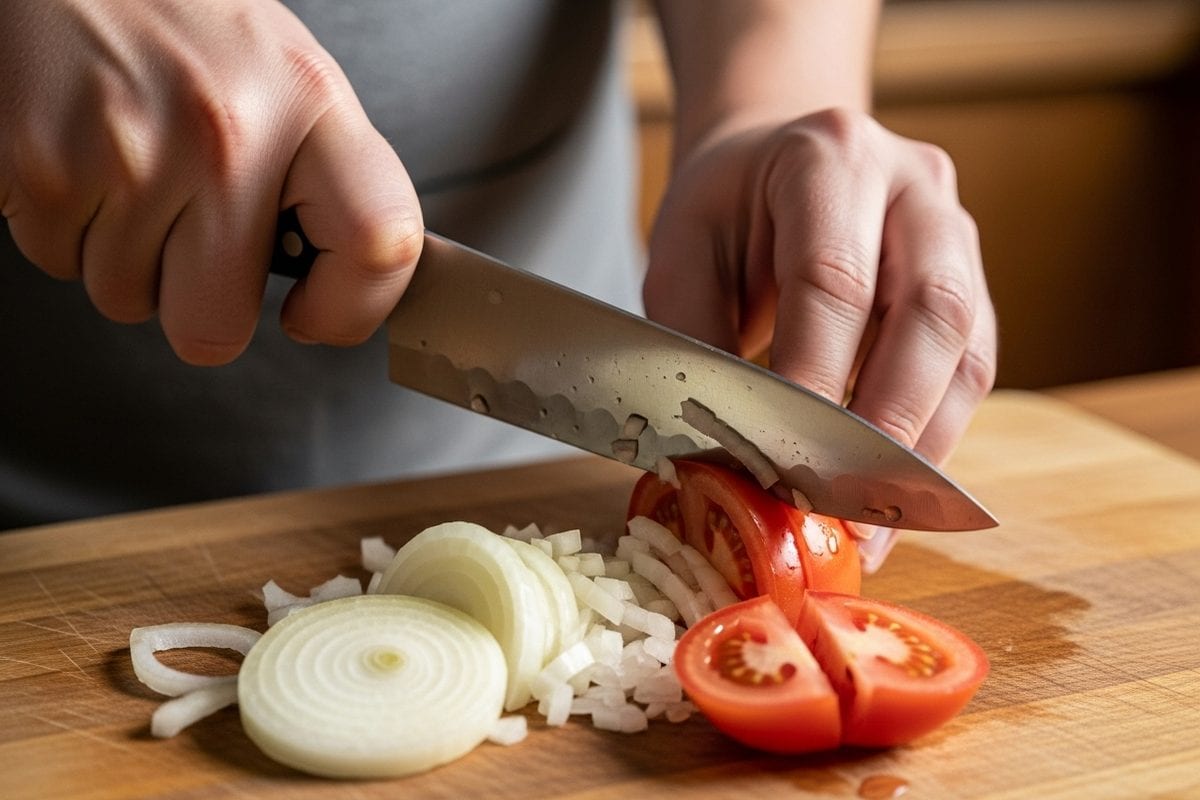 रोजमर्रा की रसोई में प्याज और टमाटर लगभग हर सब्जी की बुनियाद होते हैं, लेकिन इन्हें बारीक और बराबर आकार में काटना कई लोगों के लिए मुश्किल काम बन जाता है. कभी प्याज काटते समय आंखों से आंसू रुकते नहीं, तो कभी टमाटर दबकर फैल जाता है और स्लाइस सही नहीं बन पाते. सही तकनीक और छोटे-छोटे किचन टिप्स अपनाकर इस काम को न सिर्फ आसान बल्कि तेज भी बनाया जा सकता है. अगर आप भी चाहते हैं कि आपकी ग्रेवी स्मूद बने, सलाद खूबसूरत दिखे और काटने में समय कम लगे, तो बारीक प्याज-टमाटर काटने का सही तरीका जानना बेहद जरूरी है.