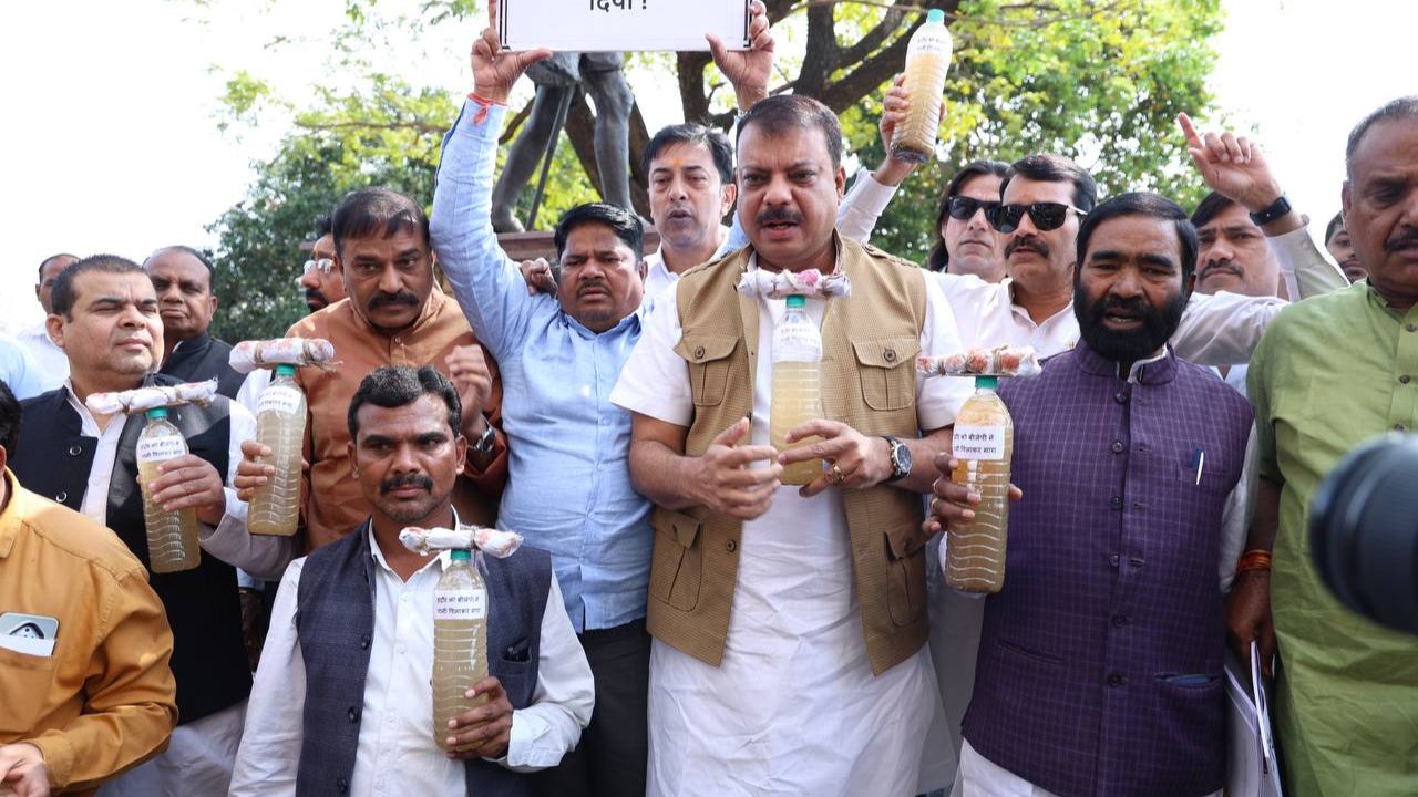 भागीरथपुरा में दूषित पानी से हुई मौतों के विरोध में कांग्रेस का विधानसभा में प्रदर्शन, उमंग सिंघार ने सरकार पर साधा निशाना
