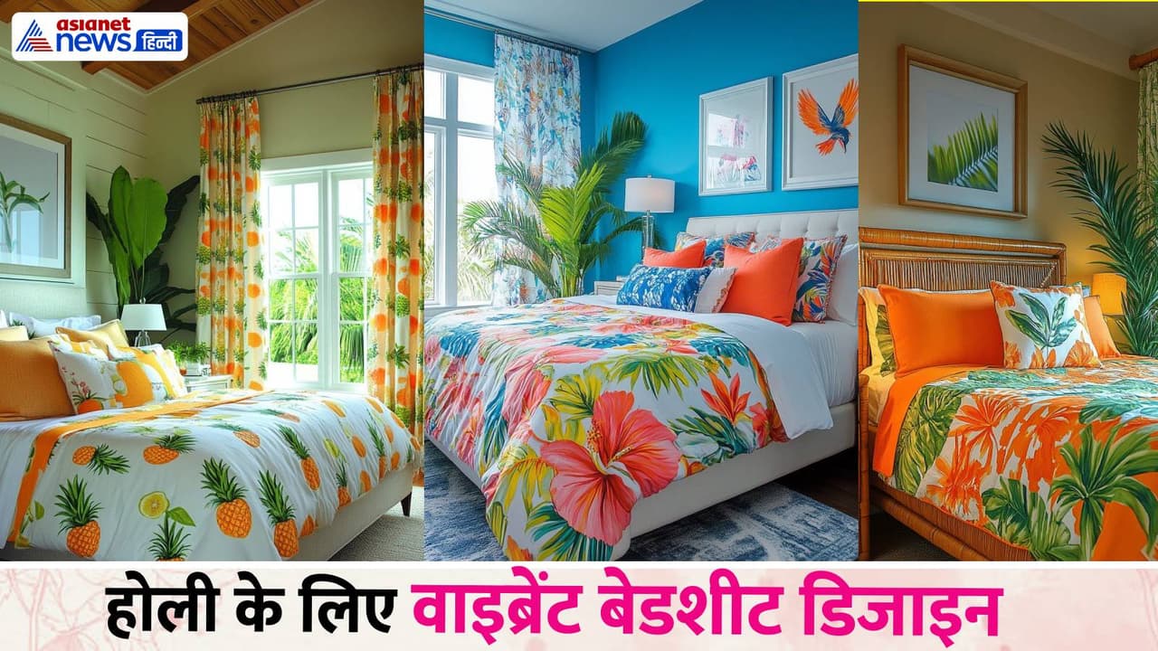 Bright color printed bed sheet: होली के लिए (Holi Special Decor) टाई-डाई, फ्लोरल, फ्रूट प्रिंट, एब्स्ट्रैक्ट स्प्लैश, ट्रॉपिकल Vibrant Bed Sheet खरीदें। ब्राइट कलर और कॉटन फैब्रिक वाली बेडशीट्स घर को रंगीन और फेस्टिव लुक देंगी।