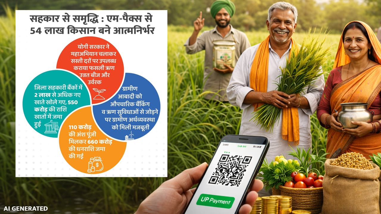 योगी सरकार के एम-पैक्स सदस्यता महाअभियान से अब तक 54 लाख किसान सहकारी ढांचे से जुड़े हैं। कम ब्याज फसली ऋण, उन्नत बीज-उर्वरक, डिजिटल पंजीकरण और यूपीआई भुगतान से ग्रामीण अर्थव्यवस्था को मजबूती मिली है।