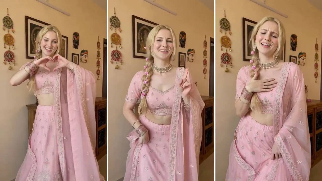 विदेशी महिला ने पिंक लहंगे में दिखाया ‘देसी स्वैग’, नेटिजन्स हुए फिदा