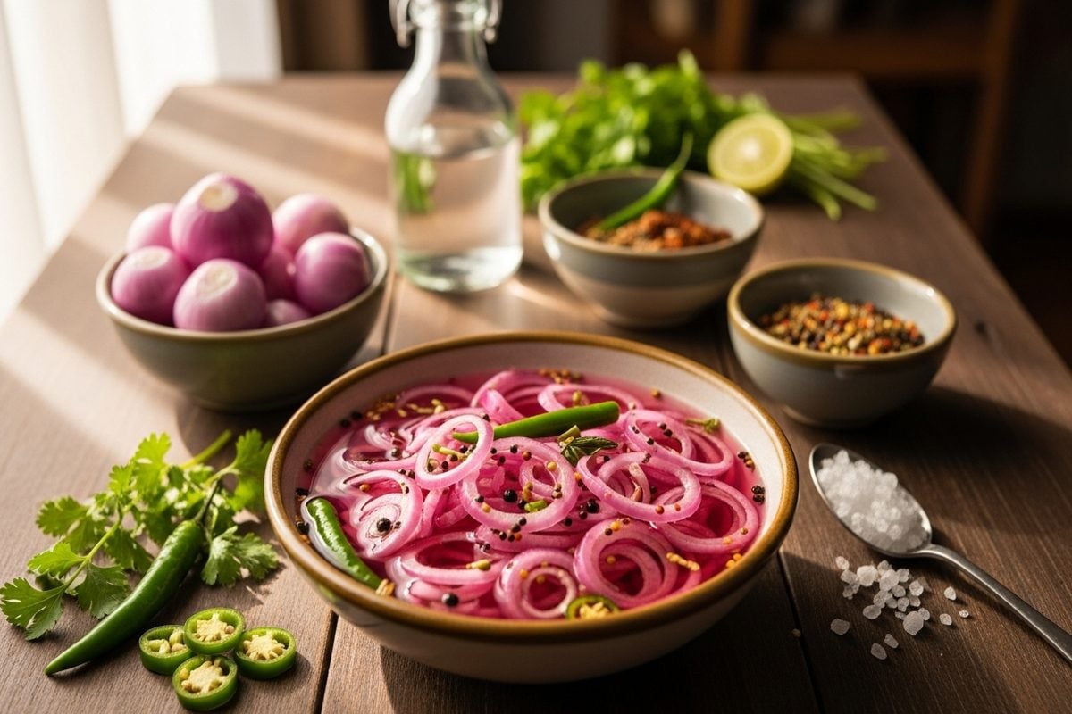 Vinegar Onions Recipe: रेस्टोरेंट स्टाइल सिरके वाली प्याज घर पर बनाना बेहद आसान है. सही अनुपात में सिरका, नमक और मसाले मिलाकर बनाई गई यह गुलाबी प्याज खाने का स्वाद बढ़ाती है, पाचन में मदद करती है और कई दिनों तक सुरक्षित रहती है. घर के खाने को खास बनाने का सरल तरीका है.