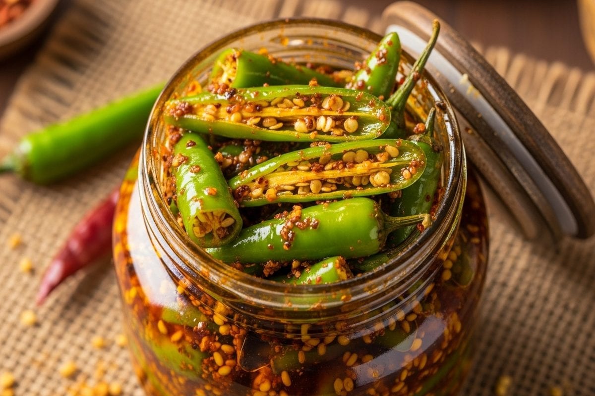 कटी हुई मिर्च का अचार सरसों का तेल, नींबू का रस और मसालों से बनता है, 15–20 दिन तक टिकता है और दाल‑चावल, पराठा, पूरी के स्वाद को बढ़ा देता है.