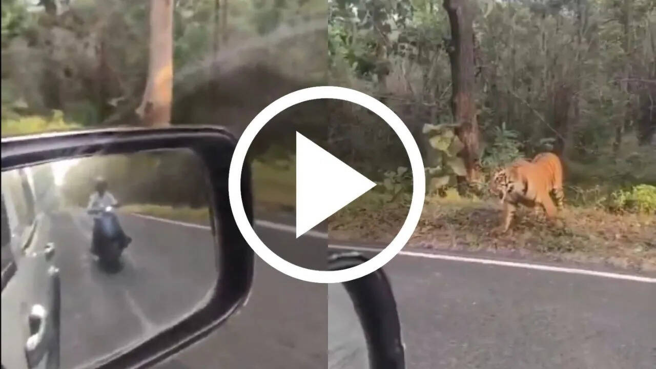 चंद्रपुर-मूल मार्ग पर बाघिन का आतंक, बाइक सवार पर किया हमला, मची चीख-पुकार, देखें VIDEO