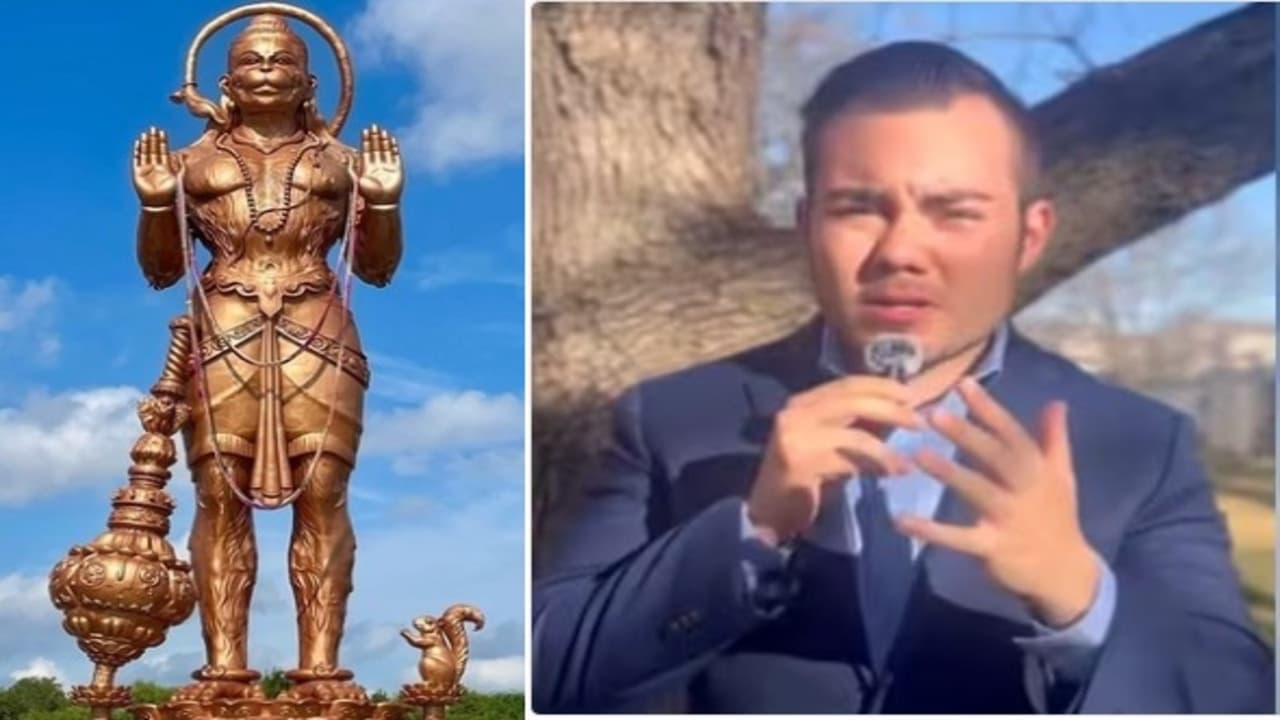 Texas Hanuman Statue: टेक्सास के शुगर लैंड में 90 फीट हनुमान मूर्ति पर MAGA एक्टिविस्ट के “Third World Attack” बयान से विवाद भड़क गया। उन्होंने अमेरिका में धार्मिक स्वतंत्रता, इमिग्रेशन डिबेट और मल्टीकल्चरल पहचान पर नई बहस छेड़ दी।
