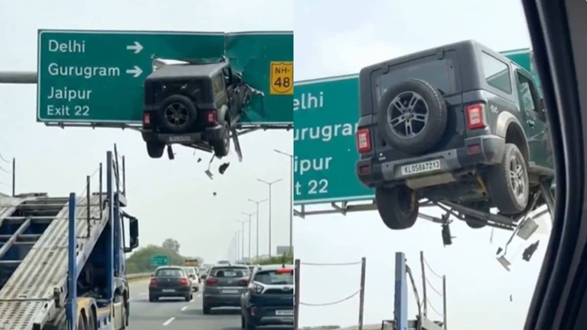 Viral Video Fact Check: क्या 40 फीट ऊंचे Delhi-Gurugram साइन बोर्ड में घुसी थार? जानिए वायरल वीडियो की क्या है सच्चाई