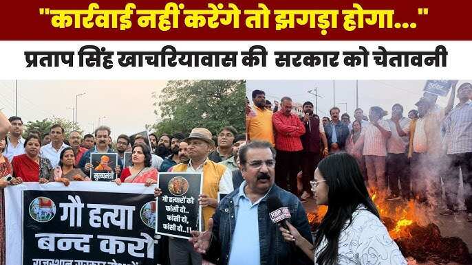 अशोकपुरा गोहत्या कांड के विरोध में जयपुर में प्रदर्शन, वीडियो में देखें खाचरियावास के नेतृत्व में CM का पुतला दहन