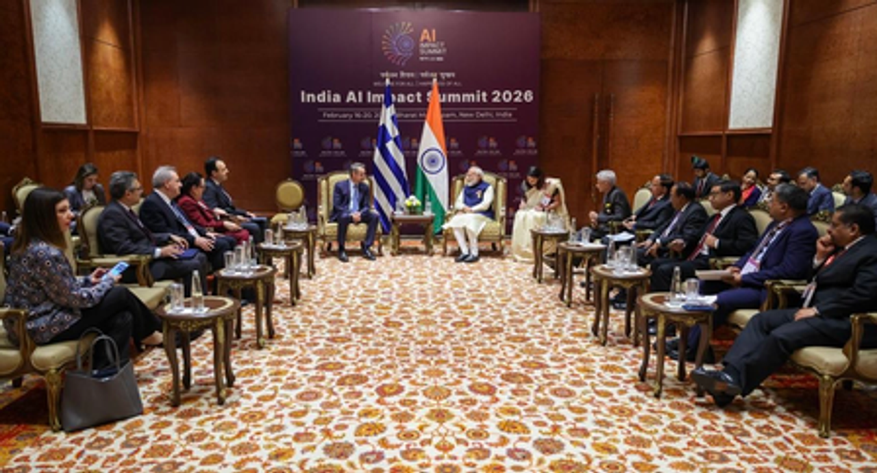 नई दिल्ली, 19 फरवरी (आईएएनएस)। प्रधानमंत्री नरेंद्र मोदी ने गुरुवार को हेलेनिक रिपब्लिक (ग्रीस) के प्रधानमंत्री किरियाकोस मित्सोटाकिस से मुलाकात की। ग्रीस के प्रधानमंत्री नई दिल्ली में इंडिया एआई इम्पैक्ट समिट, 2026 में हिस्सा लेने के लिए 18 से 19 फरवरी 2026 तक भारत में हैं। मित्सोटाकिस के साथ डिजिटल गवर्नेंस मंत्री दिमित्रियोस पापास्टरगियो और वरिष्ठ अधिकारियों का एक प्रतिनिधिमंडल भी था।