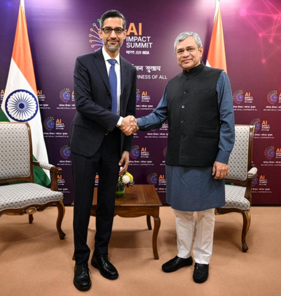 इंडिया एआई इम्पैक्ट समिट 2026 के साइडलाइन में हुई बैठक के बारे में सोशल मीडिया प्लेटफॉर्म एक्स पर केंद्रीय मंत्री वैष्णव ने लिखा, गूगल और अल्फाबेट के सीईओ सुंदर पिचाई से मुलाकात हुई। इसमें डेटा सेंटर्स में निवेश, शिक्षा, हेल्थकेयर एवं रिन्यूएबल्स में एआई रिसर्च, एआई मानकों को तैयार करने में सहयोग पर चर्चा की गई।