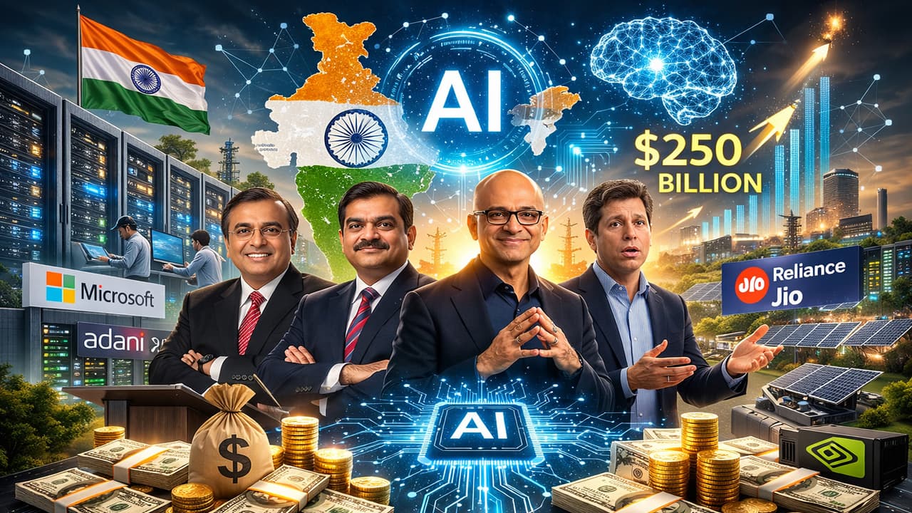 इंडिया AI इम्पैक्ट समिट 2026 में AI इंफ्रास्ट्रक्चर पर अरबों डॉलर के निवेश की घोषणाएं हुईं। Microsoft, Adani, TCS, Reliance, L&T और Yotta जैसी कंपनियां डेटा सेंटर, क्लाउड और एडवांस्ड कंप्यूटिंग में अरबों डॉलर का बड़ा दांव लगा रही हैं।
