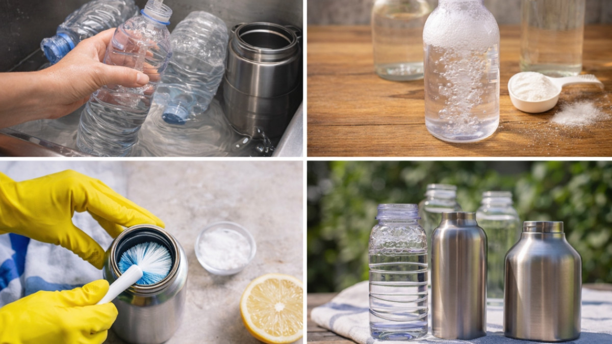 सबसे पहले बोतल को खाली करें और गुनगुने पानी से अच्छी तरह रिंस करें। इससे अंदर जमी धूल और हल्की गंदगी निकल जाती है। ढक्कन को भी अलग करके धोना न भूलें, क्योंकि सबसे ज्यादा कीटाणु वहीं जमा होते हैं।