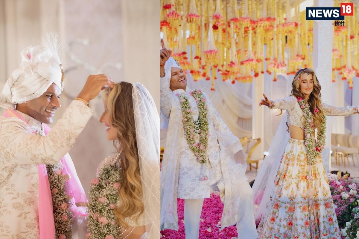 'गब्बर' की दुल्हनिया का वेडिंग लुक वायरल! मनीष मल्होत्रा के लहंगे में दिखा ‘गोरी मेम’ का जलवा, फोटो देख फैंस हुए हैरान