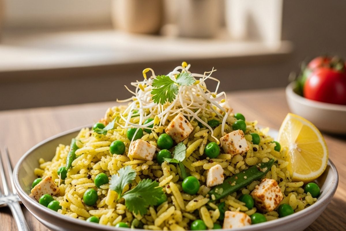 High Protein Poha Recipe: हाई-प्रोटीन पोहा एक साधारण नाश्ते को हेल्दी और फिटनेस-फ्रेंडली बनाने का आसान तरीका है. इसमें स्प्राउट्स, मटर और पनीर मिलाकर प्रोटीन बढ़ाया जाता है, जिससे पेट देर तक भरा रहता है और वेट लॉस में मदद मिलती है. यह जल्दी बनने वाला, स्वादिष्ट और संतुलित सुबह का नाश्ता है.