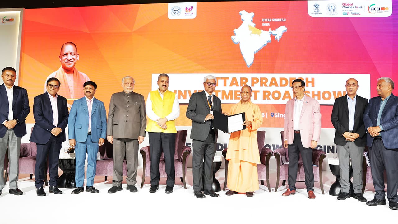 सिंगापुर में ‘इन्वेस्ट यूपी मेगा रोड शो’ के दौरान मुख्यमंत्री योगी आदित्यनाथ ने ट्रिपल एस मॉडल को निवेश की गारंटी बताते हुए 1 ट्रिलियन डॉलर इकॉनमी का रोडमैप पेश किया। जेवर में सिंगापुर सिटी, एमओयू और इंफ्रास्ट्रक्चर विस्तार पर जोर दिया गया।