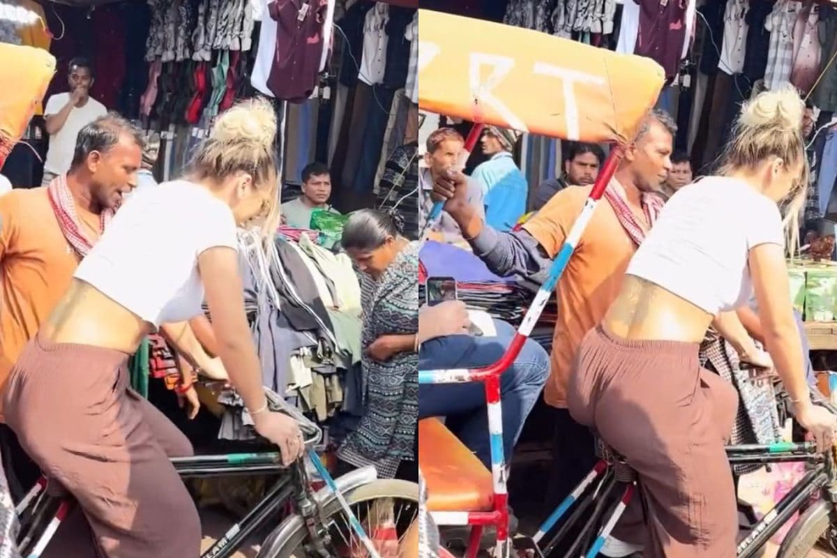 'पूरा लगान वसूल लिया!' मार्केट में रिक्शा चलाती दिखी विदेशी लड़की, पैदल चलता दिखा रिक्शेवाला!