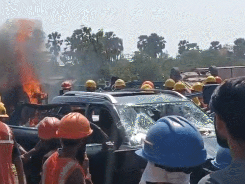 सूरत की आर्सेलर मित्तल निप्पॉन स्टील कंपनी में हंगामा:वेतन वृद्धि की मांग को लेकर हड़ताल पर उतरे कर्मचारियों ने की आगजनी, महिला डीसीपी घायल