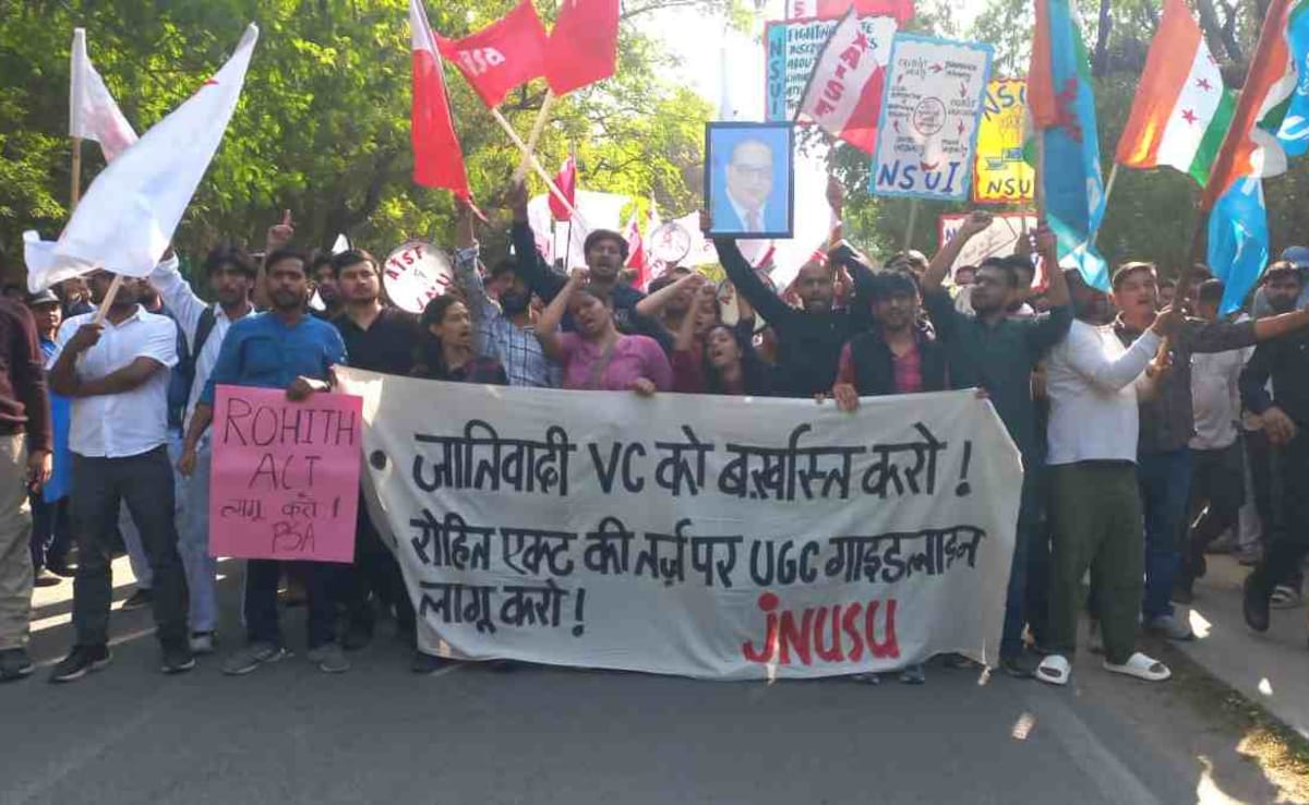 JNU वीसी के खिलाफ लेफ्ट छात्रों का प्रदर्शन, यूनिवर्सिटी के मेन गेट का ताला तोड़ा