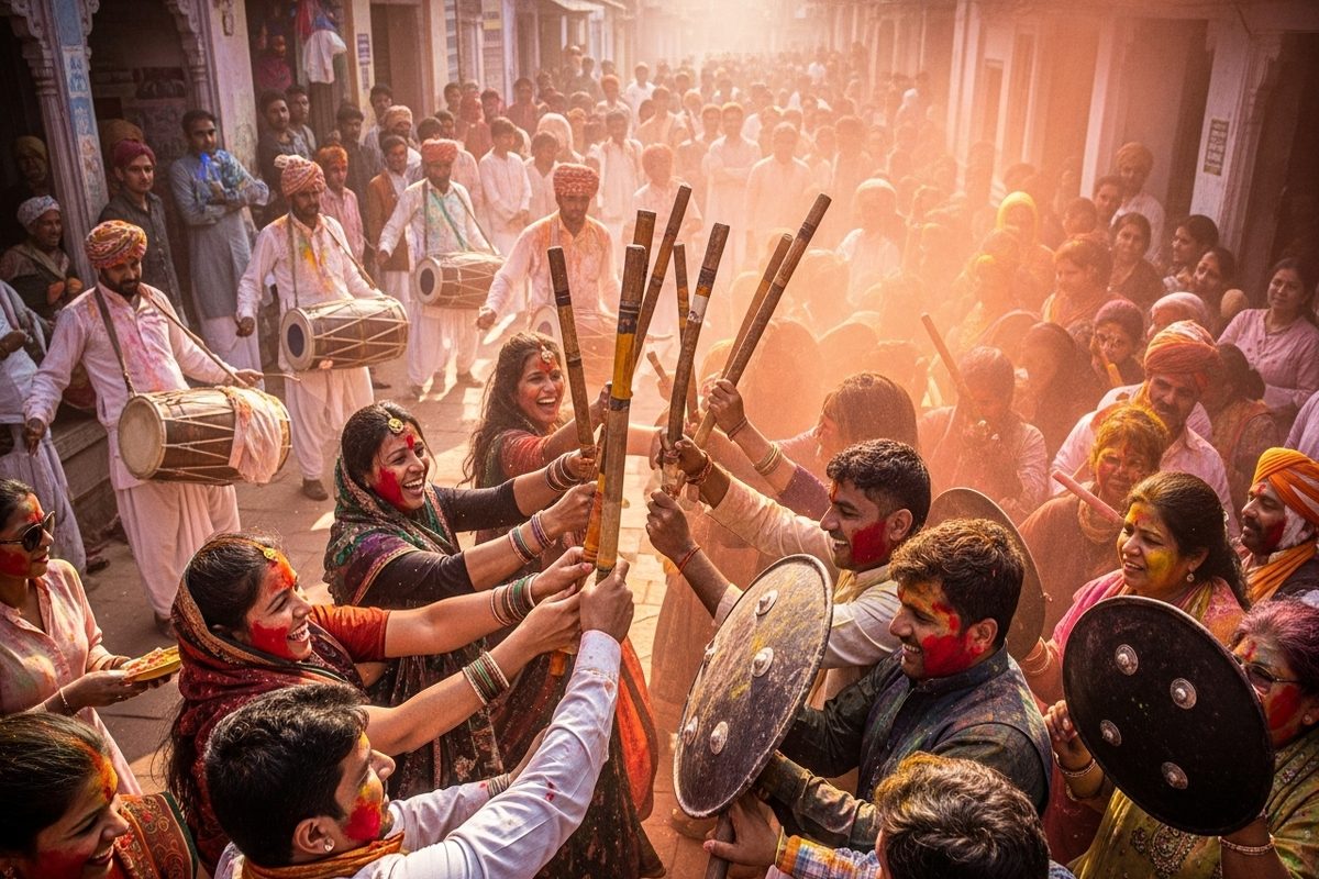 नंदगांव की लट्ठमार होली शुरू, कृष्ण-बलदाऊ के आंगन से लट्ठमार चौक तक, आखिर कैसे सजे रंग और रिवाज?