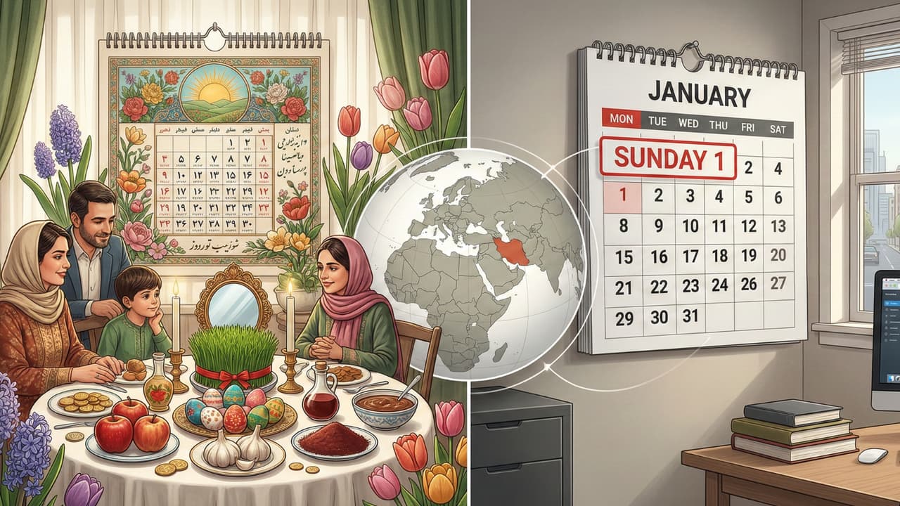 Solar Hijri Calendar Iran: ईरान में नया साल 1 जनवरी से नहीं बल्कि नौरोज के दिन से शुरू होता है। यहां रविवार नहीं, गुरुवार-शुक्रवार वीकेंड होता है। जानिए ईरान के सोलर हिजरी कैलेंडर और वर्किंग सिस्टम की पूरी दिलचस्प कहानी आसान भाषा में।