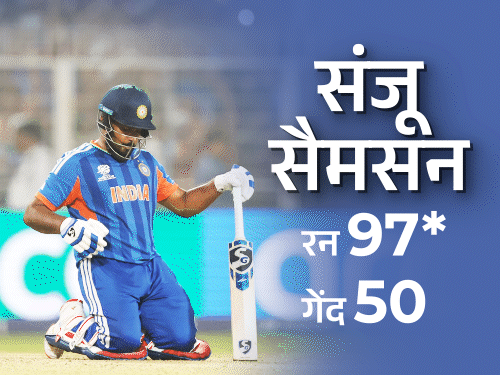 भारत ने टी-20 वर्ल्ड कप में वेस्टइंडीज को 5 विकेट से हरा दिया। रविवार को वेस्टइंडीज के 195 रन के जवाब में भारत ने 19.2 ओवर में 5 विकेट खोकर लक्ष्य हासिल किया। लेकिन स्कोरकार्ड से ज्यादा याद रह गया वो पल, जब 97* रन बनाकर विजयी शॉट लगाने वाले संजू सैमसन घुटनों पर बैठ गए। सूर्या ने टोपी उतारकर अपने मैच विनर को सलाम किया और ईडन गार्डेन्स तालियों से गूंज उठा। इससे पहले भारतीय कप्तान सूर्यकुमार यादव ने धूल उड़ाकर बॉलिंग एंड चुना। पढ़िए IND Vs WI मैच के टॉप मोमेंट्स… 1. जीत के बाद सैमसन घुटनों पर बैठे और भगवान को शुक्रिया कहा संजू सैमसन ने 20वें ओवर में रोमारियो शेफर्ड की दूसरी गेंद पर चौका लगाकर भारत को सेमीफाइनल में पहुंचाया। विनिंग शॉट लगाने के बाद उन्होंने हेलमेट निकालकर बाईं ओर फेंक दिया। इसके बाद वह घुटनों के बल बैठ गए, आसमान की ओर देखा और फिर हाथ जोड़कर अपने भगवान को शुक्रिया कहा। 2. सूर्या ने टोपी उतारकर सैमसन का सम्मान किया कप्तान सूर्यकुमार यादव ने मैच जीतने के बाद शानदार पारी खेलने वाले संजू सैमसन का अनोखे तरीके से सम्मान किया। सैमसन ने 20वें ओवर की पहली गेंद पर छक्का और दूसरी गेंद पर चौका लगाकर भारत को मैच जिताया। नाबाद पारी खेलने के बाद जब सैमसन डगआउट की ओर जा रहे थे, तब कप्तान सूर्या ने अपनी टोपी उतारी और सिर झुकाकर उनका सम्मान किया। 3. सूर्या ने धूल उड़ाकर बॉलिंग एंड तय किया भारतीय बॉलिंग शुरू होने से पहले कप्तान सूर्यकुमार यादव ने एंड चुनने से पहले अनोखा तरीका अपनाया। उन्होंने दोनों एंड पर जाकर धूल उड़ाई और हवा का रुख पता किया। उसके बाद उन्होंने गेंदबाज अर्शदीप सिंह से बात की। इसके बाद सूर्या के बताए एंड से अर्शदीप ने पहला ओवर डाला। 4. मैथ्यू हेडेन ने बेल बजाकर मैच की शुरुआत की कोलकाता के ईडेन गार्डेन्स पर रविवार को परंपरा के अनुसार बेल बजाकर भारत और वेस्टइंडीज के बीच मैच की शुरुआत हुई। इस बार ऑस्ट्रेलिया के पूर्व खिलाड़ी मैथ्यू हेडन ने बेल बजाई, जिसके बाद मैच शुरू हुआ। 5. वरुण का गलत थ्रो, चेज रन आउट से बचे तीसरे ओवर की दूसरी गेंद पर वरुण चक्रवर्ती ने रोस्टन चेज को रन आउट करने का मौका गंवा दिया। अर्शदीप की गेंद को चेज ने प्वाइंट पर खेलकर सिंगल चुराने की कोशिश की और लगभग नॉन-स्ट्राइक पर पहुंच गए थे। लेकिन शाई होप ने रन लेने से मना कर दिया। वरुण ने गेंद विकेटकीपर के पास फेंकने की बजाय नॉन-स्ट्राइक एंड पर थ्रो कर दी। इस तरह चेज रन आउट होने से बच गए। 6. रोस्टन चेज का नो-लुक स्कूप वेस्टइंडीज की पारी के दौरान रोस्टन चेज ने जसप्रीत बुमराह की गेंद पर ऐसा इनोवेटिव शॉट खेला कि सब हैरान रह गए। चेज ने 5वें ओवर की चौथी गेंद पर गेंद की लाइन में आकर नो-लुक स्कूप शॉट खेला। गेंद बाउंड्री लाइन के बाहर चली गई और चेज क