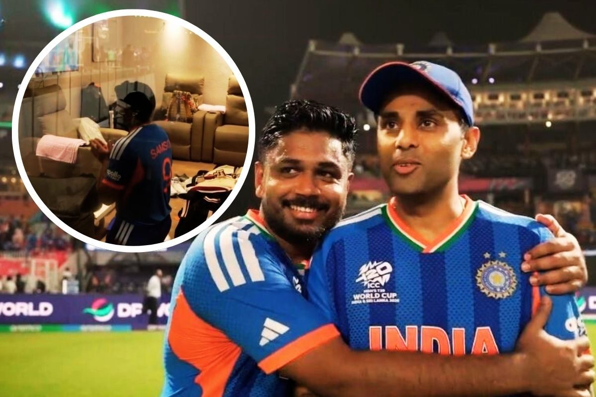 Dressing room Video of Sanju and Surya: बीसीसीआई ने सोमवार को एक वीडियो क्लिप को शेयर किया, ब्रॉडकास्टर्स ने फाइनल बॉल के बाद इसकी झलक पहले ही दिखा दी थी, लेकिन पूरी फुटेज में सैमसन का बेहद निजी पल देखने को मिला. मैदान पर वेस्टइंडीज के खिलाड़ियों से हाथ मिलाने और टीम के साथ जश्न मनाने के बाद सैमसन चुपचाप ड्रेसिंग रूम में लौटे.