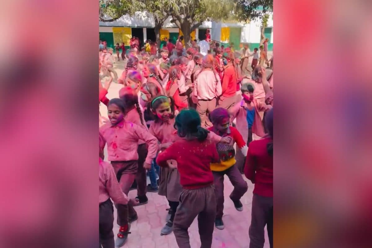 स्कूल में बच्चों ने मनाई होली, मिलकर पंजाबी गाने पर किया डांस, लोग बोले- 'बेटा 19 का पहाड़ा सुनाओ!'
