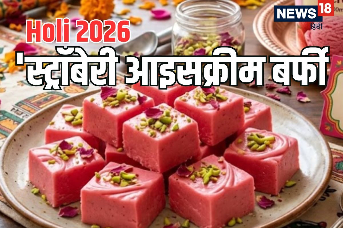 Strawberry ice cream barfi : होली(Holi Recipe) पर इन दिनों सोशल मीडिया पर 'स्ट्रॉबेरी आइसक्रीम बर्फी' की धूम मची हुई है. यह ट्रेडिशनल इंडियन बर्फी और मॉडर्न फ्रूटी आइसक्रीम का एक ऐसा शानदार फ्यूजन है, जिसे आप सिर्फ दो मुख्य चीजों से तैयार कर सकते हैं. इसका मखमली (Creamy) टेक्सचर और भीनी-भीनी खुशबू इसे बाज़ार की महंगी मिठाइयों से भी बेहतर बनाती है. जानते हैं बनाने का सबसे आसान तरीका.