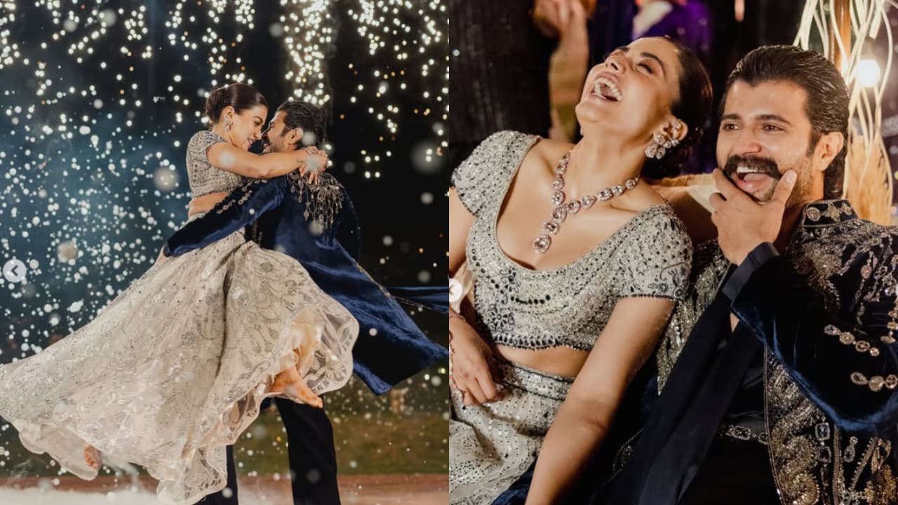 विजय देवरकोंडा और रश्मिका मंदाना ने अपनी शादी के बाद संगीत की तस्वीरें शेयर की हैं। दोनों ने फाल्गुनी शेन पीकॉक के कपड़े पहने। 24 फरवरी को यह जश्न सुबह 4 बजे तक चला, जिसमें दोनों के परिवार भी शामिल हुए।