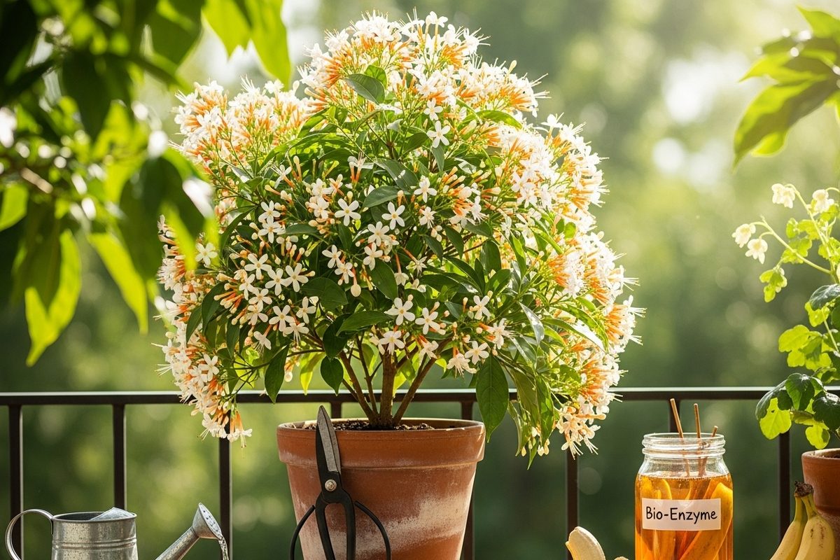 Flowering Tricks: हरसिंगार में फूल लाने के लिए सही प्रूनिंग, संतुलित पानी और केले के छिलके से बना बायो एंजाइम कारगर उपाय है. पोटेशियम से भरपूर यह घोल पौधे में कलियां बढ़ाता है और बिना केमिकल के बेहतर नतीजे देता है.
