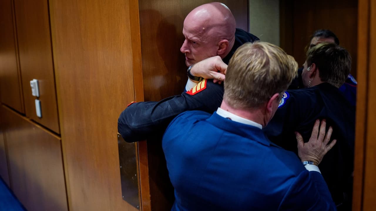 World News: US कैपिटल हिल की सुनवाई में ईरान युद्ध के विरोध में पूर्व US मरीन ब्रायन मैकगिनिस ने नारे लगाए। कैपिटल पुलिस ने ज़बरदस्ती घसीटकर बाहर निकाला, हाथ मारने की आवाज़ वीडियो में कैद। क्या यह अमेरिका में बढ़ते ईरान युद्ध विरोध का संकेत है?