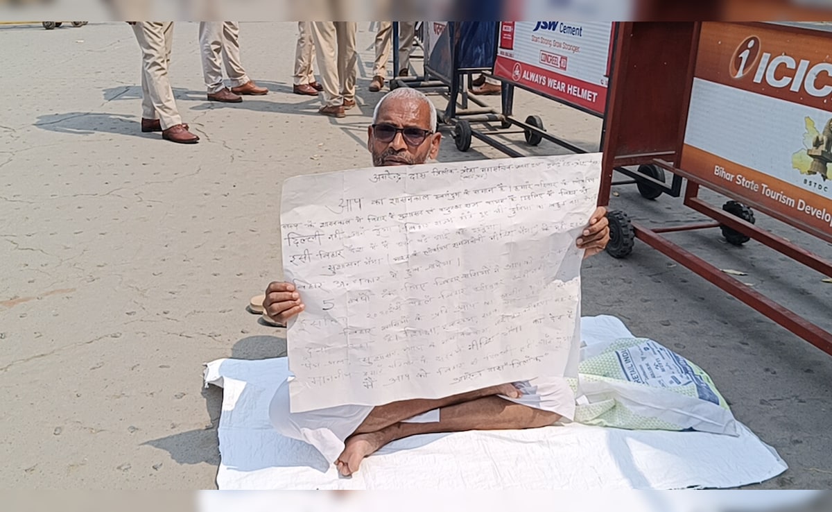 नीतीश कुमार बिहार में रहें...मुख्यमंत्री आवास के बाहर अनशन पर बैठे JDU कार्यकर्ता की मांग