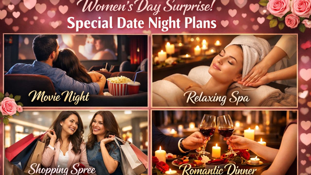 Women’s Day पर मां, पत्नी, बहन या गर्लफ्रेंड को खास महसूस कराने के लिए प्लान करें स्पेशल डेट नाइट। कैंडल लाइट डिनर, मूवी डेट, पर्सनलाइज्ड गिफ्ट, स्पा डे और दिल से लिखे नोट जैसे आइडिया इस दिन को यादगार बना सकते हैं।
