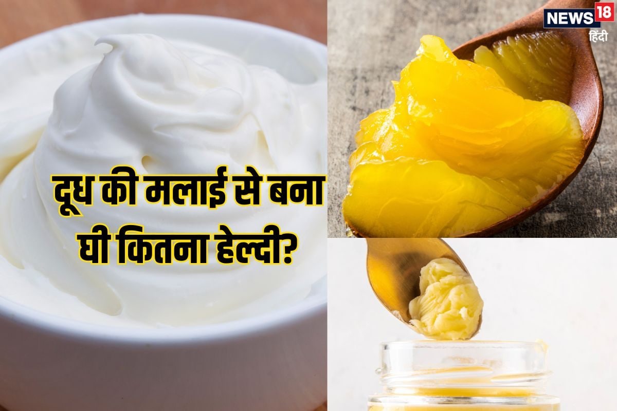 How healthy is ghee made from milk cream: घी का सेवन करने से शरीर को कई फायदे होते हैं, क्योंकि इसमें हेल्दी फैट होता है. कुछ लोगों को लगता है कि घी खाने से वजन बढ़ता है, लेकिन ऐसा नहीं है. काफी लोग मार्केट से घी खरीदते हैं तो कुछ घर पर ही दूध की मलाई को इकट्ठा करके घी तैयार करते हैं. आपको लगता है कि मलाई से बना घी हेल्दी और शुद्ध है, लेकिन आयुर्वेद का कुछ और ही कहना है. जानिए, मलाई से घी बनाकर खाना सेहत के लिए कैसे है अनहेल्दी.