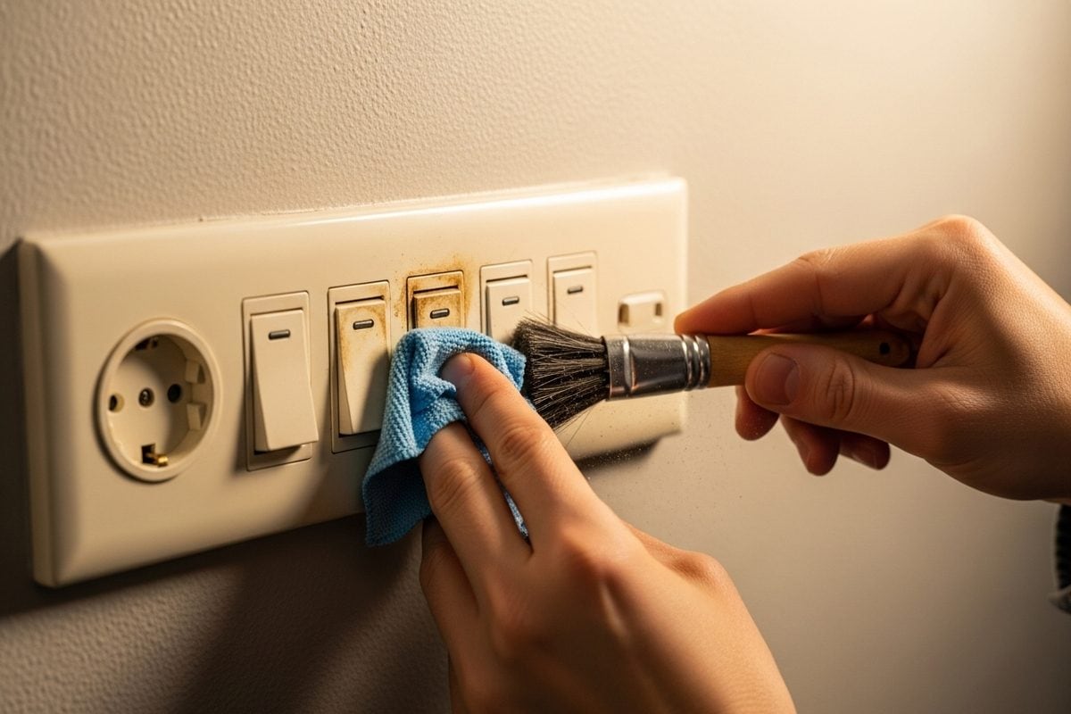 स्विचबोर्ड की सफाई के लिए MCB बंद करें. माइक्रोफाइबर कपड़ा, टूथपेस्ट, बेकिंग सोडा-नींबू, सिरका और मैजिक इरेज़र स्पंज का उपयोग करें. स्विच के अंदर पानी न जाने दें. सफाई के बाद 5-10 मिनट सूखने दें.
