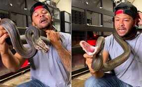 अजगर ने शख्स को कस लिया, बचने की कोशिश में जुटा, खौफनाक वीडियो वायरल