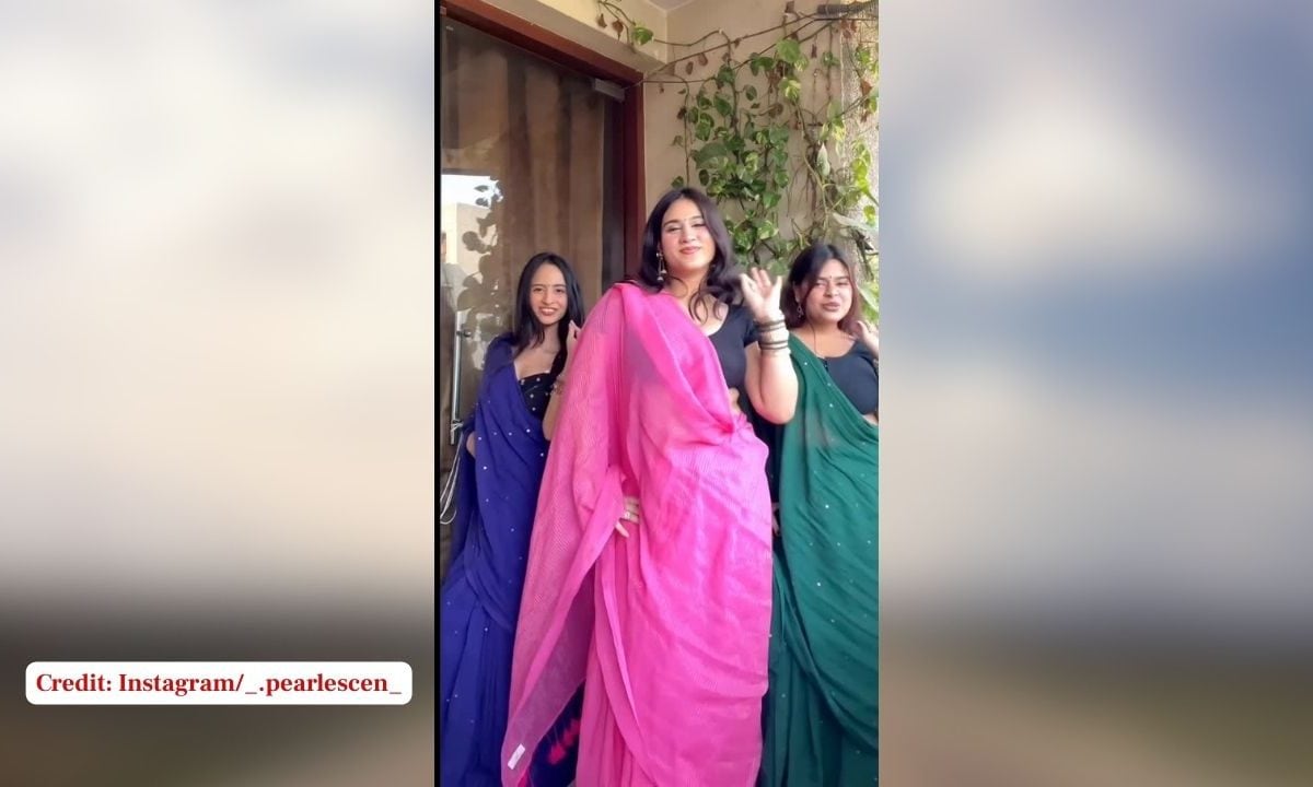 इंटरनेट पर इन दिनों तीन सहेलियों का एक डांस वीडियो जबरदस्त तरीके से छाया हुआ है, जिसमें वे मशहूर हरियाणवी गाने 'घणा कसूता' पर बेहतरीन डांस करती नजर आ रही हैं. गुलाबी, हरी और नीली साड़ी पहने इन लड़कियों ने अपनी सादगी और धमाकेदार स्टेप्स से हर किसी को अपना दीवाना बना दिया है. वीडियो में उनकी सिंक की हुई परफॉरमेंस और चेहरे के हाव-भाव इतने सटीक हैं कि लोग इसे बार-बार लूप पर देख रहे हैं. इंस्टाग्राम पर इस वीडियो को @_.pearlescen_ नाम के अकाउंट से शेयर किया गया है.