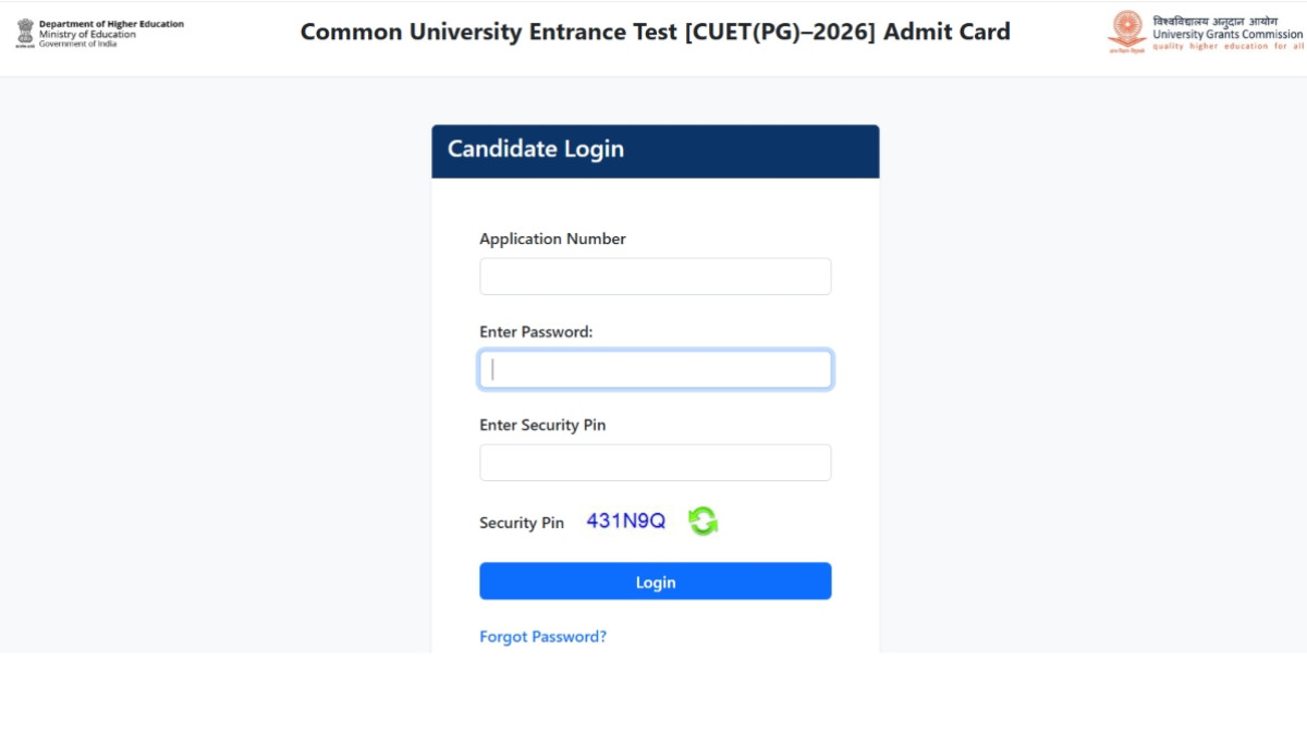 - होमपेज पर "CUET PG 2026 Admit Card" से संबंधित लिंक पर क्लिक करें।