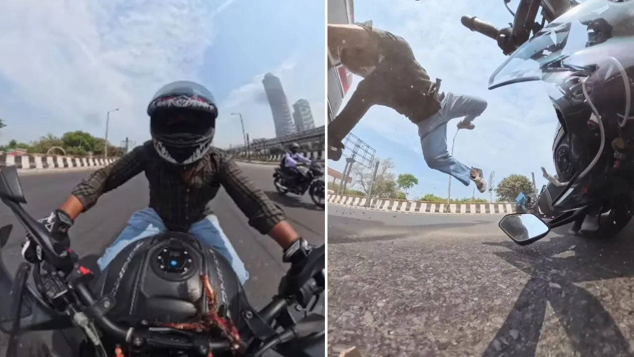 हाईवे पर जबरदस्त भिड़ंत के बाद भी कूल रहा बाइकर, वीडियो वायरल