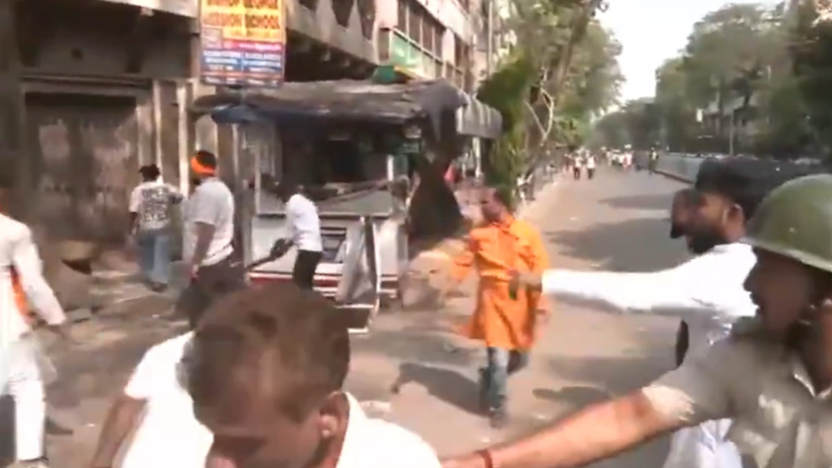 #WATCH | कोलकाता, पश्चिम बंगाल: गिरीश पार्क इलाके में BJP और TMC कार्यकर्ताओं के बीच झड़प हो गई; पत्थर भी फेंके गए।