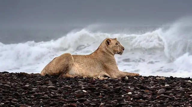 घना जंगल छोड़ समंदर किनारे आराम फरमाती दिखी शेरनी, कैमरे में कैद हुआ अद्भुत नजारा